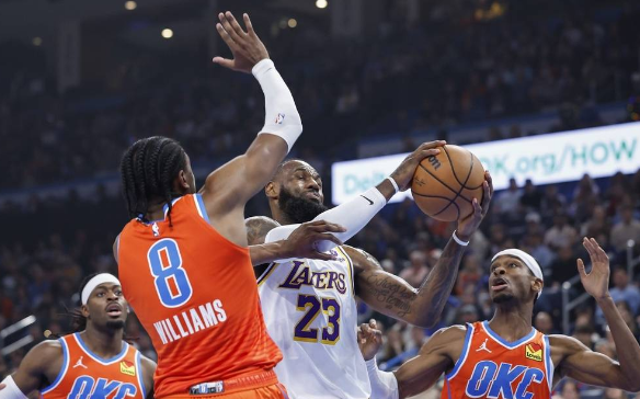 比賽開始,變陣的湖人防守端并沒有很好地限制住對手,亞歷山大進(jìn)攻端非常穩(wěn)定再次單節(jié)上雙,而八村塁也成為替補(bǔ)奇兵,雙方展開對攻戰(zhàn),雷霆首節(jié)轟出39分領(lǐng)先3分,次節(jié)拉塞爾里突外投連砍8分,湖人一波13-3攻擊波直接反超比分,霍姆格倫攻防建功止血,但湖人接連中投又是11-2進(jìn)攻波再次拉開雙位數(shù)領(lǐng)先,半場湖人領(lǐng)先12分。下半場,雙方上來展開拉鋸戰(zhàn),詹姆斯里突外投連續(xù)取分,加上與濃眉的配合,湖人一度拉開20分以上領(lǐng)先,亞歷山大單節(jié)15分又是苦苦支撐,末節(jié)杰倫-威廉姆斯聯(lián)手霍姆格倫追分,詹姆斯里突外投連砍15分幫助湖人牢牢守住雙位數(shù)左右領(lǐng)先,最終湖人力克雷霆,終止4連敗。