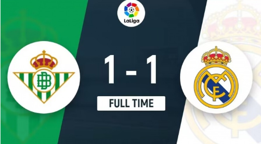 全場(chǎng)比賽結(jié)束,皇馬1-1貝蒂斯。